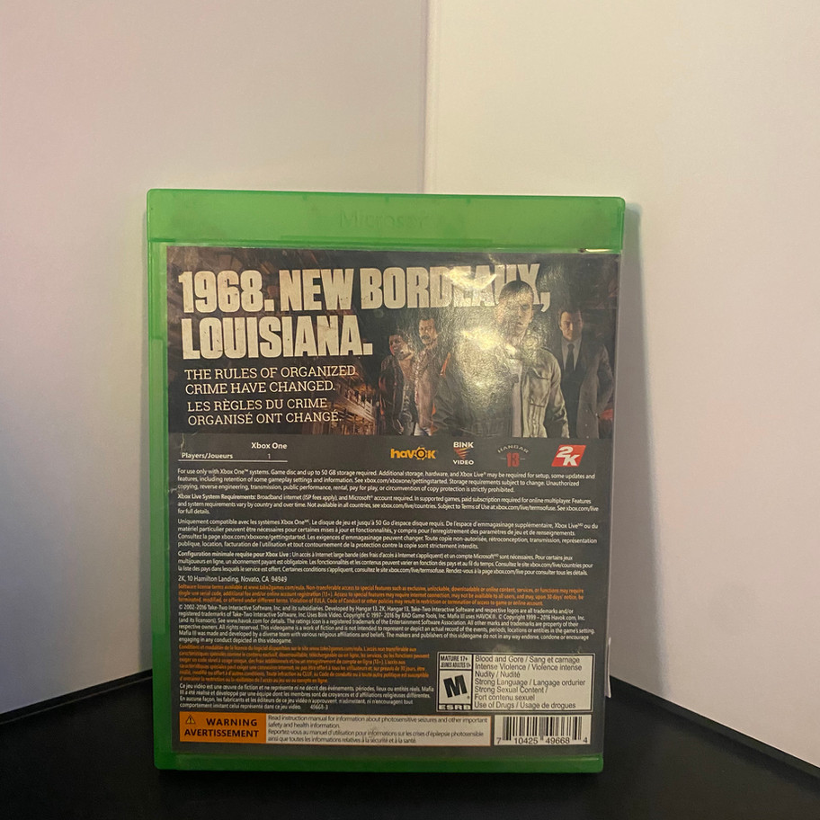 Experience the gritty underworld of 1968 New Bordeaux with Mafia 3 for Xbox One, available at Generation C, your trusted local business for the latest in gaming. Immerse yourself in the intense narrative as Lincoln Clay seeks revenge against the Italian Mafia, all portrayed with stunning graphics and authentic period details. At Generation C, we value providing top-notch gaming experiences and personalized customer service. Elevate your gameplay with our exclusive in-store benefits and let us help you find your next adventure. Visit our store today and remember why gaming is more than a hobby—it's a community.