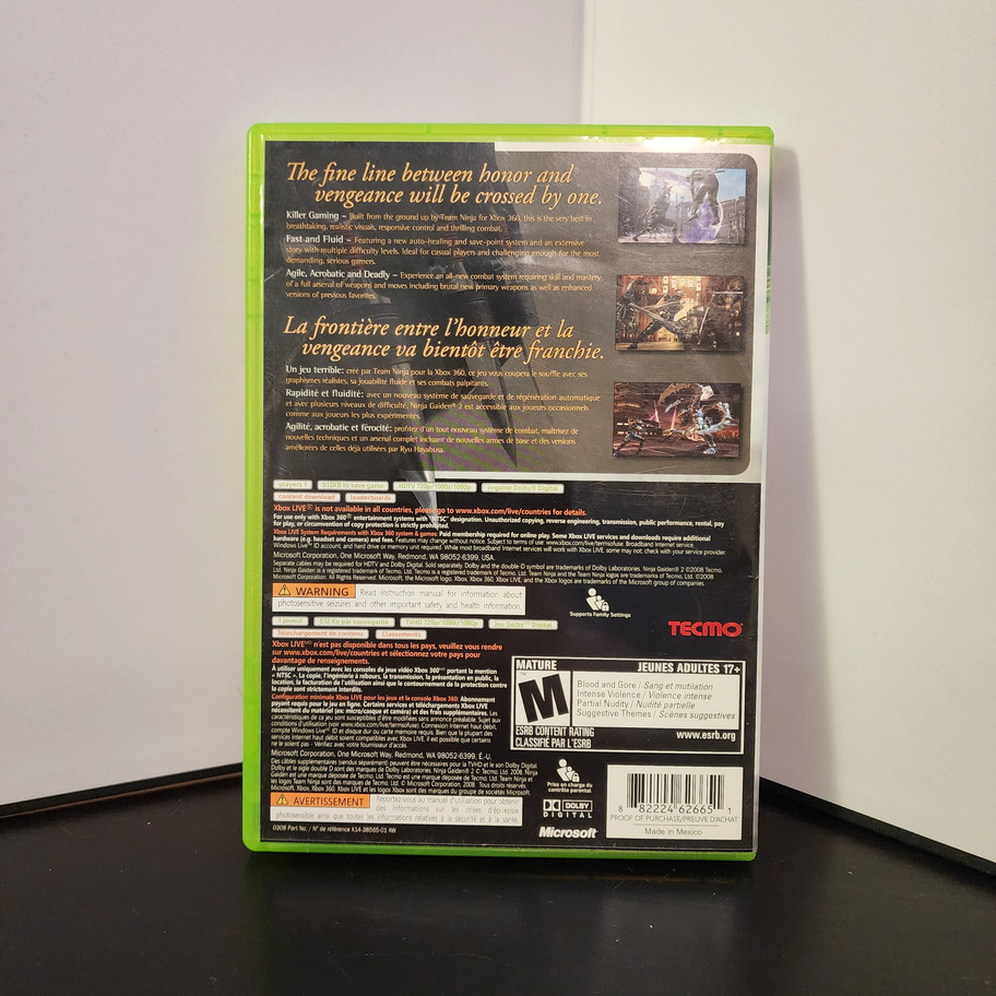 Unleash the ultimate ninja experience with Ninja Gaiden 2 for Xbox 360, available now at Generation C. This thrilling action-adventure game immerses players in visceral combat and stunning graphics, perfect for the savvy gamer's collection. Our local business is dedicated to providing top-tier gaming titles, ensuring you find your next favorite. Visit us today and explore our curated selection that values quality and customer satisfaction. *Blue