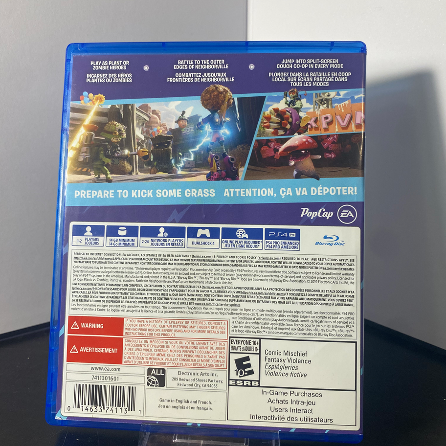 Join the uproarious garden warfare in Plants Vs Zombies Battle for Neighbourville for PS4, exclusively available at Generation C, your local destination for video games and collectibles. Engage in all-new thrilling modes, and customize your plant and zombie heroes to defend Neighbourville in style. Embrace the adventure with friends or solo, and experience the chaotic fun that's captured the love of Generation C. Discover why this game is a must-have for your collection today!