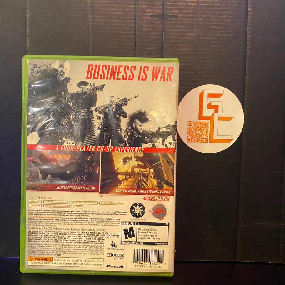 Experience futuristic warfare with Syndicate for Xbox 360 from Generation C, your local gaming cornerstone dedicated to bringing the latest in entertainment. Dive into a cybernetic world where tactical combat meets high-tech enhancements, perfect for our community of forward-thinking gamers. Trust in our expert customer service and values that prioritize your gaming satisfaction. Visit us today and upgrade your console experience with this acclaimed title.